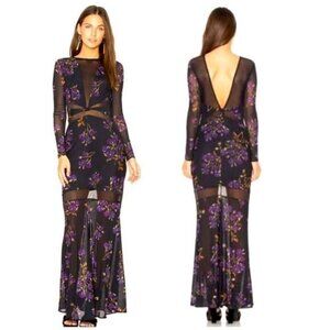 NBD Revolve Women’s Zoey Floral Mesh Long Sleeve Maxi Dress Gown Size XL New NWT