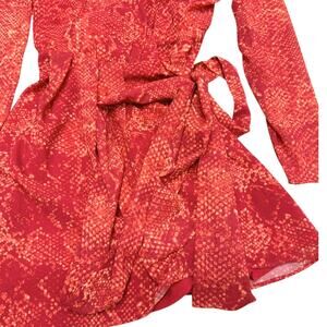 NBD Structured Shoulder Fauna Wrap Dress Red Orange Snake Chiffon size Small