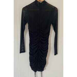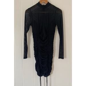 NBD Sycamore Sheer Bodycon Ruched Mini Dress in Black LBD Size Small NWT