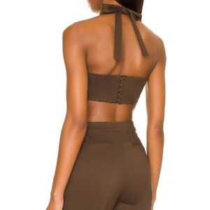 NBD Taraji Top in Cocoa Brown Halter Neck Back Tie Curved Corset Hem