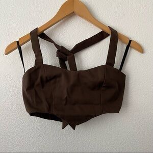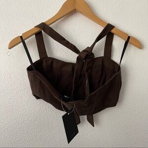 NBD Taraji Top in Cocoa Brown Halter Neck Back Tie Curved Corset Hem Size XXS.