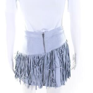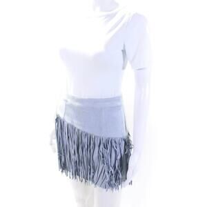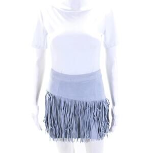 NBD Tyler Soft Faux Suede Baby Light Blue Fringe Mini Skirt S