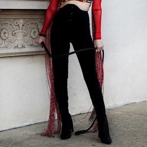 Ultra high waist pants. Very flattering. Stretchy. Split hem. Minor pilling around hip area.