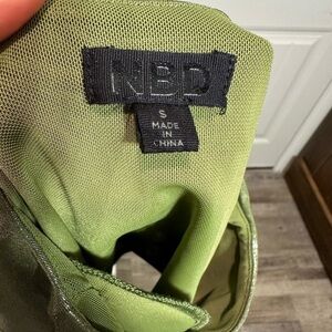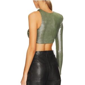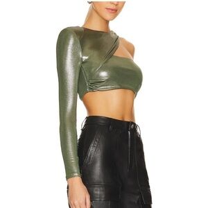 NBD Vea One Shoulder Crop Top Metallic Green SMALL Asymmetrical Cut Out