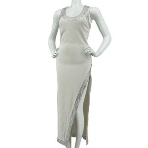 NBD White Maxi Stretch Jeweled High Split Dress Sz XS- Small $368 🥂🍾