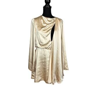 NBD White Satin Cocktail Mini Dress XS Kimono Blouson Designer Revolve $208 NEW
