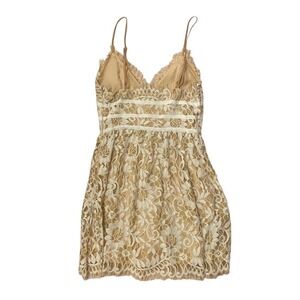 NBD Women Revolve Give It Up Lace Fit & Flare Dress V Neck Cream Beige Medium
