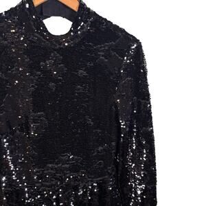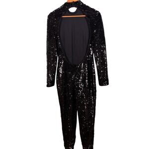 NBD Women's Black Sequin Long Sleeve Jumpsuit Small