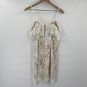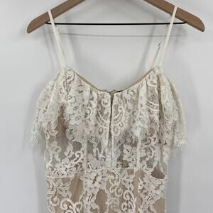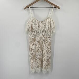 NBD X Naven Allie Dress Lace Cold Shoulder Sweetheart Neck Mini White/ Nude