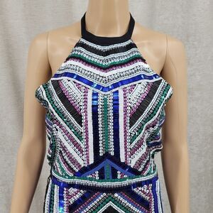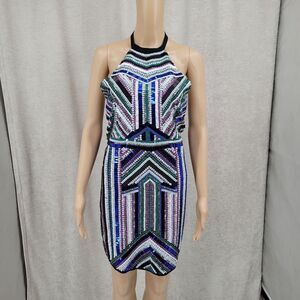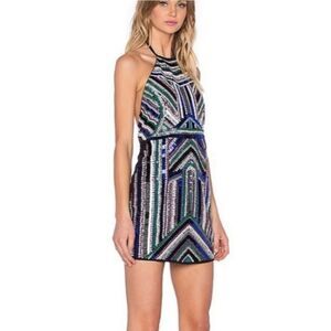 NBD X The Naven Twins Involved Beaded Halter Mini Dress Women's Size Medium
