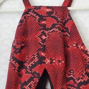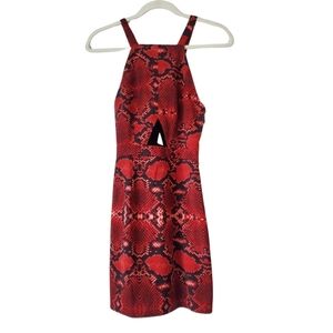 Mini dress in red and black snake print. Cutout. Criss-cross back. Side zip. Excellent condition.