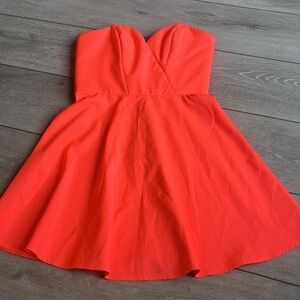 NBD x Naven twins Revolve neon orange retro strapless swing dress size 2
