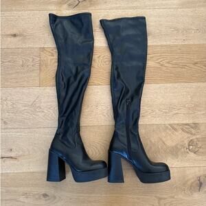 NBD x Raye - Rylee Over The Knee Platform Boots in Black