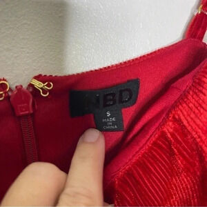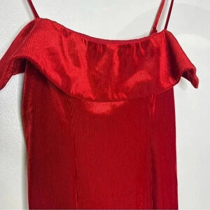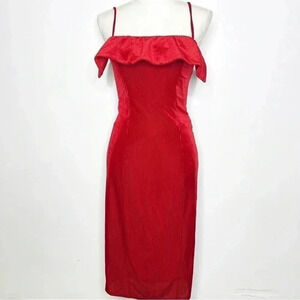 NBD x Revolve Red Ruffle Pencil Dress Ribbed Velvet Size Small