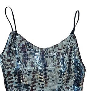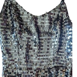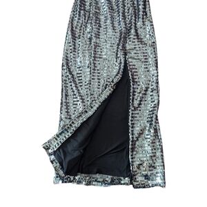 NBD long Cocktail Dress Embellished & Sequined Maxi gown Size Small. Rise and shine. With its floor grazing length, NBD × REVOLVE's On My Mind Dress features a high sultry slit with stunning allover silver sequins. When the light hits you just right, own that spotlight. Gunmetal color. Self: 100% poly Lining: 95% poly 5% spandex Hand wash cold Fully lined Adjustable shoulder straps Sequined throughout Side slit and hidden side zipper closure . Approx measurements laying flat: Pit to pit:15 Waist:13,5 Neckline to hem 55 Slit: 28 30. prom
