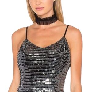 NBD x Revolve long gunmetal Cocktail Showgirl Embellished Sequined Gown Sz S
