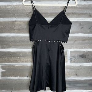 The Brandi Dress by NBD features waist cut-outs and beaded trim closures for unique look, and adjustable shoulder straps for a custom fit.