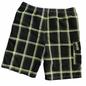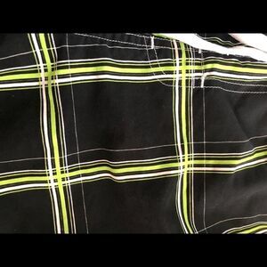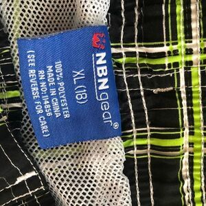 NBN Gear Plaid Boardshorts Size XL. Great condition. Internal mesh lining. Black with neon green & white plaid pattern. Side thigh velcro pocket