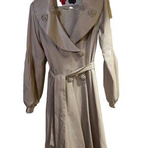 NC Pearl Satin Trench Coat with Statement Buttons – Size Medium