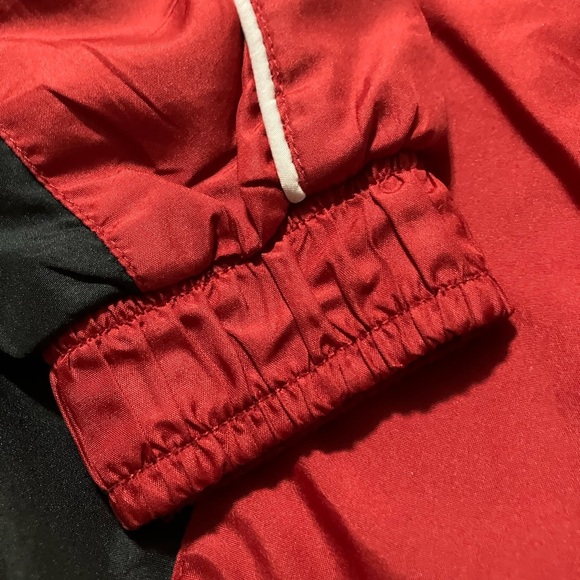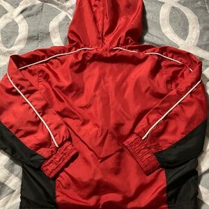Stay stylish with this jacket, featuring a vibrant red and black color scheme. Designed with a full-length zipper and a protective hood, this jacket is perfect for chilly days. Its material ensures you remain comfortable during any outdoor activity. NC State