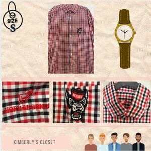 NC State “Horn Legend” Gingham Button-Down Shirt Men’s Small – Red Black White