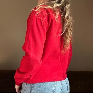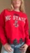 Elevate your wardrobe with this vibrant NC State University sweatshirt. The unique combination of red, white, and black colors create a stylish and eye-catching look. The long sleeves and classic fit make it perfect for all seasons and occasions.