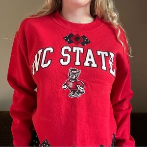 #college #sports #merch #cozy #comfy #patchwork #unique #upcycled #edgy #grunge #streetwear #ncstatewolfpack