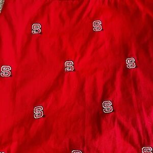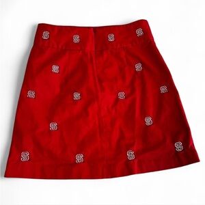 NC State Wolfpack red mini skirt featuring embroidered NC State “S” logos throughout.