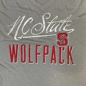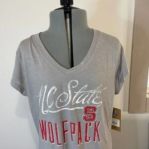 NC State Wolf Pack t shirt. Gray with white and red spell out. New with tags. Size Small.