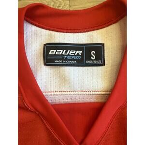 The NCAA Boston University Terriers Red Hockey Jersey is a size small officially licensed product featuring player Adam's name and number (#8). Made by Bauer in Canada, this red jersey is designed for men and is perfect for supporting the Boston University Terriers during the regular season. Ideal for fans of hockey and the team, this jersey is a must-have piece of fan apparel for any supporter of the sport. The jersey is in great pre-owned condition. Please see all of the photos for more details.