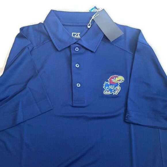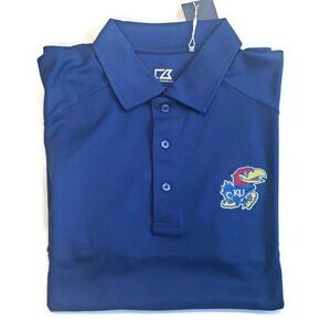 NCAA Kansas Jayhawks Adult Mens CB Drytec Genre Short Sleeve Polo Blue Size S
