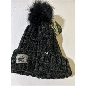 NCAA Kansas Jayhawks Pom Pom Knit Beanie Gray Black Cuffed Hat Womens New