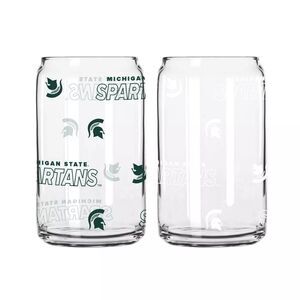 NCAA Michigan State Spartans 2pk Glass Can 16oz Stemless Pint Glasses NWT