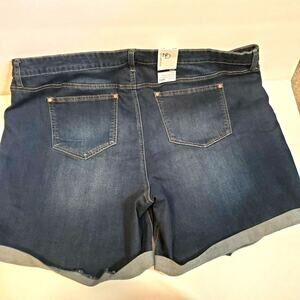 ND New Directions Denim Shorts Plus Size 24W Cuffed High Rise NEW Dark Blue