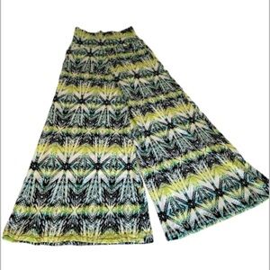 ND New Directions Print Palazzo Pants Multi Color Wide Leg Pull On Boho SZ S