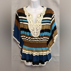 ND New Directions Tunic Top Women’s Size Small Striped Multicolor V- Neck