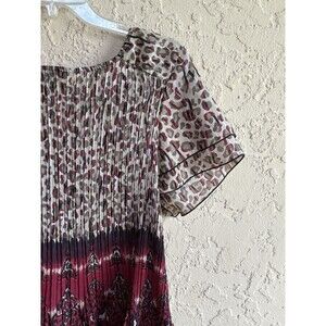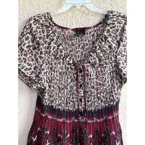 ND New Directions Womens 2X Leopard Kringle Print Flutter Sleeves Button Up Top