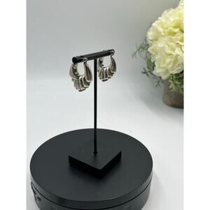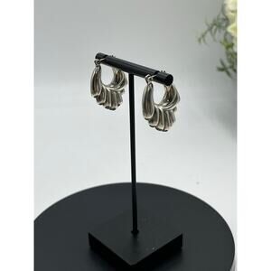These are hoop earrings with a distinctive ribbed or wavy pattern, often described as resembling a shell, wing, or shrimp.