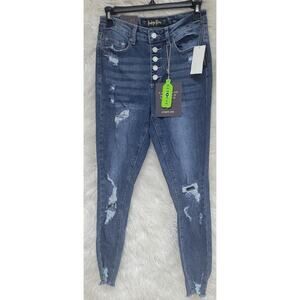 ÍNDIGO RAIN Juniors' Curvy High-Rise Button-Front Distress Ankle Jeans 5 3060