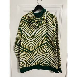 North Dakota State University NDSU Bison green striped Zubaz zebra print hoodie sweatshirt. Men's size medium.