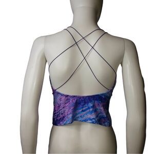 NECESSARY OBJECTS Blue and Purple Tie Dye Open Strappy Back Tank Top Size Medium