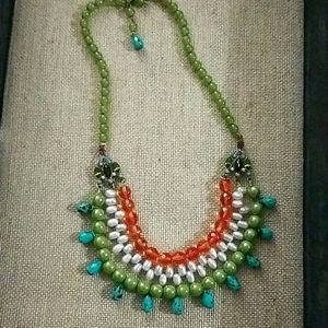 Orange, lime, turquoise & pearls