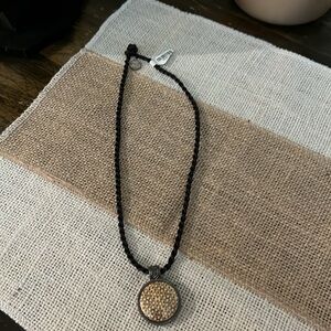 Black rope with pendant. Length is 9 inches