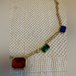 36”GOLD CHAIN WITH LG STONES OF GREEN RED BLUE & PURPLE