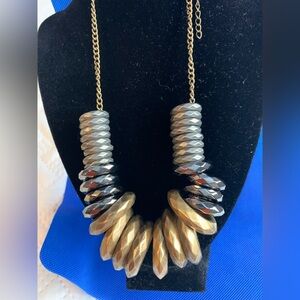 NECKLACE & EARRING SET. New! Brass and Gunmetal Graduated Rings. Gorgeous!