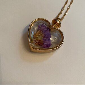 NECKLACE GOLD TONE ROPE CHAIN PENDANT HEART PURPLE FLOWER KEEPSAKE