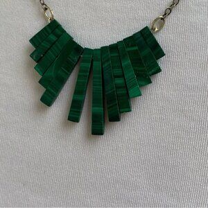 WOMENS JEWELRY STERLING SILVER NECKLACE GRADUATED TAPERED FAN STYLE MALACHITE GREEN 13 pieces BIB STYLE FRINGE 15”