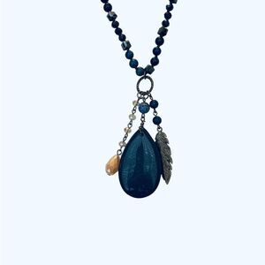 Glass and Natural Deep Blue Stone Pendant