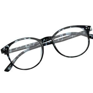 Protect your eyes with the newest blue-light blocker style. These were designed as a classic round frame in black and blue tortoise shell print.