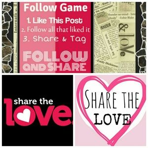 Keep checking this post for More Followers as it gets shared and grows :) 1. Like this post 2. Follow everyone that liked it 3. Share Post Watch the Follows grow! TAG YOUR POSH FRIENDS ♡SPREADING THE LOVE ONE POSHER AT A TIME♡ Closet Share some Items from one another's closet as well! Lets see how long we can keep the Shares going! If someone shares a item from your closet share 2 items from there's! THANKS FOR PLAYING NEW POSH FRIENDS! :)